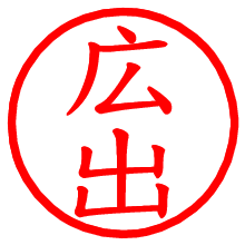 [朱肉の色]を選び、入力窓に“広出”と入力して[生成]ボタンを押すと、印影が更新され、リンクから電子印鑑(デジタル印影)がダウンロードできます。 電子印鑑「広出」の作り方文字表示が変なときや、文字バランスが悪いときは[字形切替]のチェックボックスでON/OFFを切り替え[生成]しなおしてください。 生成される画像は通常の印影「広出.png」と、にじみを表現した少し太めの印影「広出B.png」の背面透過PNG形式2種と、鮮明なPDF形式の印影「広出.pdf」の計3種類です。 朱肉の微妙な色の違いを7色で表現しました。デフォルト(左端)は、JISが定めた朱肉の色のマンセル値(7.5R 5/14)をRGB値(217,66,54)に変換したものになっています。 「電子透かし」にチェックを入れて[生成]ボタンを押すと、タイムスタンプを電子透かしとして埋め込んだセキュアな電子印鑑が作れます。詳細は別ページの「タイムスタンプと電子透かし」でご覧ください。 広出さんの日付印が作れます。「日付スタンプメーカー」は、社内向けの書類に利用されることの多い日付印(データ印)が無料で作れるWebアプリケーションです。中段に日付が入り、上段と下段は、ともに8文字まで文字が入ります。 ![]() 古代文字で落款印が作れます。「落款スタンプメーカー」で作品を引き立たせる落款印が作れます。
