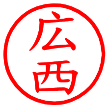 [朱肉の色]を選び、入力窓に“広西”と入力して[生成]ボタンを押すと、印影が更新され、リンクから電子印鑑(デジタル印影)がダウンロードできます。 電子印鑑「広西」の作り方文字表示が変なときや、文字バランスが悪いときは[字形切替]のチェックボックスでON/OFFを切り替え[生成]しなおしてください。 生成される画像は通常の印影「広西.png」と、にじみを表現した少し太めの印影「広西B.png」の背面透過PNG形式2種と、鮮明なPDF形式の印影「広西.pdf」の計3種類です。 朱肉の微妙な色の違いを7色で表現しました。デフォルト(左端)は、JISが定めた朱肉の色のマンセル値(7.5R 5/14)をRGB値(217,66,54)に変換したものになっています。 「電子透かし」にチェックを入れて[生成]ボタンを押すと、タイムスタンプを電子透かしとして埋め込んだセキュアな電子印鑑が作れます。詳細は別ページの「タイムスタンプと電子透かし」でご覧ください。 広西さんの日付印が作れます。「日付スタンプメーカー」は、社内向けの書類に利用されることの多い日付印(データ印)が無料で作れるWebアプリケーションです。中段に日付が入り、上段と下段は、ともに8文字まで文字が入ります。 ![]() 古代文字で落款印が作れます。「落款スタンプメーカー」で作品を引き立たせる落款印が作れます。