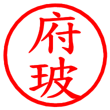 [朱肉の色]を選び、入力窓に“府玻”と入力して[生成]ボタンを押すと、印影が更新され、リンクから電子印鑑(デジタル印影)がダウンロードできます。 電子印鑑「府玻」の作り方文字表示が変なときや、文字バランスが悪いときは[字形切替]のチェックボックスでON/OFFを切り替え[生成]しなおしてください。 生成される画像は通常の印影「府玻.png」と、にじみを表現した少し太めの印影「府玻B.png」の背面透過PNG形式2種と、鮮明なPDF形式の印影「府玻.pdf」の計3種類です。 朱肉の微妙な色の違いを7色で表現しました。デフォルト(左端)は、JISが定めた朱肉の色のマンセル値(7.5R 5/14)をRGB値(217,66,54)に変換したものになっています。 「電子透かし」にチェックを入れて[生成]ボタンを押すと、タイムスタンプを電子透かしとして埋め込んだセキュアな電子印鑑が作れます。詳細は別ページの「タイムスタンプと電子透かし」でご覧ください。 府玻さんの日付印が作れます。「日付スタンプメーカー」は、社内向けの書類に利用されることの多い日付印(データ印)が無料で作れるWebアプリケーションです。中段に日付が入り、上段と下段は、ともに8文字まで文字が入ります。 ![]() 古代文字で落款印が作れます。「落款スタンプメーカー」で作品を引き立たせる落款印が作れます。