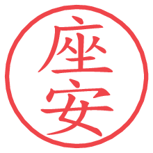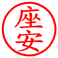 [朱肉の色]を選び、入力窓に“座安”と入力して[生成]ボタンを押すと、印影が更新され、リンクから電子印鑑(デジタル印影)がダウンロードできます。 電子印鑑「座安」の作り方文字表示が変なときや、文字バランスが悪いときは[字形切替]のチェックボックスでON/OFFを切り替え[生成]しなおしてください。 生成される画像は通常の印影「座安.png」と、にじみを表現した少し太めの印影「座安B.png」の背面透過PNG形式2種と、鮮明なPDF形式の印影「座安.pdf」の計3種類です。 朱肉の微妙な色の違いを7色で表現しました。デフォルト(左端)は、JISが定めた朱肉の色のマンセル値(7.5R 5/14)をRGB値(217,66,54)に変換したものになっています。 「電子透かし」にチェックを入れて[生成]ボタンを押すと、タイムスタンプを電子透かしとして埋め込んだセキュアな電子印鑑が作れます。詳細は別ページの「タイムスタンプと電子透かし」でご覧ください。 座安さんの日付印が作れます。「日付スタンプメーカー」は、社内向けの書類に利用されることの多い日付印(データ印)が無料で作れるWebアプリケーションです。中段に日付が入り、上段と下段は、ともに8文字まで文字が入ります。 ![]() 古代文字で落款印が作れます。「落款スタンプメーカー」で作品を引き立たせる落款印が作れます。