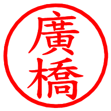 [朱肉の色]を選び、入力窓に“廣橋”と入力して[生成]ボタンを押すと、印影が更新され、リンクから電子印鑑(デジタル印影)がダウンロードできます。 電子印鑑「廣橋」の作り方文字表示が変なときや、文字バランスが悪いときは[字形切替]のチェックボックスでON/OFFを切り替え[生成]しなおしてください。 生成される画像は通常の印影「廣橋.png」と、にじみを表現した少し太めの印影「廣橋B.png」の背面透過PNG形式2種と、鮮明なPDF形式の印影「廣橋.pdf」の計3種類です。 朱肉の微妙な色の違いを7色で表現しました。デフォルト(左端)は、JISが定めた朱肉の色のマンセル値(7.5R 5/14)をRGB値(217,66,54)に変換したものになっています。 「電子透かし」にチェックを入れて[生成]ボタンを押すと、タイムスタンプを電子透かしとして埋め込んだセキュアな電子印鑑が作れます。詳細は別ページの「タイムスタンプと電子透かし」でご覧ください。 廣橋さんの日付印が作れます。「日付スタンプメーカー」は、社内向けの書類に利用されることの多い日付印(データ印)が無料で作れるWebアプリケーションです。中段に日付が入り、上段と下段は、ともに8文字まで文字が入ります。 ![]() 古代文字で落款印が作れます。「落款スタンプメーカー」で作品を引き立たせる落款印が作れます。