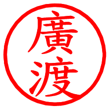 [朱肉の色]を選び、入力窓に“廣渡”と入力して[生成]ボタンを押すと、印影が更新され、リンクから電子印鑑(デジタル印影)がダウンロードできます。 電子印鑑「廣渡」の作り方文字表示が変なときや、文字バランスが悪いときは[字形切替]のチェックボックスでON/OFFを切り替え[生成]しなおしてください。 生成される画像は通常の印影「廣渡.png」と、にじみを表現した少し太めの印影「廣渡B.png」の背面透過PNG形式2種と、鮮明なPDF形式の印影「廣渡.pdf」の計3種類です。 朱肉の微妙な色の違いを7色で表現しました。デフォルト(左端)は、JISが定めた朱肉の色のマンセル値(7.5R 5/14)をRGB値(217,66,54)に変換したものになっています。 「電子透かし」にチェックを入れて[生成]ボタンを押すと、タイムスタンプを電子透かしとして埋め込んだセキュアな電子印鑑が作れます。詳細は別ページの「タイムスタンプと電子透かし」でご覧ください。 廣渡さんの日付印が作れます。「日付スタンプメーカー」は、社内向けの書類に利用されることの多い日付印(データ印)が無料で作れるWebアプリケーションです。中段に日付が入り、上段と下段は、ともに8文字まで文字が入ります。 ![]() 古代文字で落款印が作れます。「落款スタンプメーカー」で作品を引き立たせる落款印が作れます。