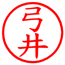 [朱肉の色]を選び、入力窓に“弓井”と入力して[生成]ボタンを押すと、印影が更新され、リンクから電子印鑑(デジタル印影)がダウンロードできます。 電子印鑑「弓井」の作り方文字表示が変なときや、文字バランスが悪いときは[字形切替]のチェックボックスでON/OFFを切り替え[生成]しなおしてください。 生成される画像は通常の印影「弓井.png」と、にじみを表現した少し太めの印影「弓井B.png」の背面透過PNG形式2種と、鮮明なPDF形式の印影「弓井.pdf」の計3種類です。 朱肉の微妙な色の違いを7色で表現しました。デフォルト(左端)は、JISが定めた朱肉の色のマンセル値(7.5R 5/14)をRGB値(217,66,54)に変換したものになっています。 「電子透かし」にチェックを入れて[生成]ボタンを押すと、タイムスタンプを電子透かしとして埋め込んだセキュアな電子印鑑が作れます。詳細は別ページの「タイムスタンプと電子透かし」でご覧ください。 弓井さんの日付印が作れます。「日付スタンプメーカー」は、社内向けの書類に利用されることの多い日付印(データ印)が無料で作れるWebアプリケーションです。中段に日付が入り、上段と下段は、ともに8文字まで文字が入ります。 ![]() 古代文字で落款印が作れます。「落款スタンプメーカー」で作品を引き立たせる落款印が作れます。