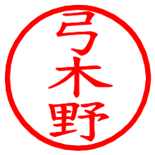 [朱肉の色]を選び、入力窓に“弓木野”と入力して[生成]ボタンを押すと、印影が更新され、リンクから電子印鑑(デジタル印影)がダウンロードできます。 電子印鑑「弓木野」の作り方文字表示が変なときや、文字バランスが悪いときは[字形切替]のチェックボックスでON/OFFを切り替え[生成]しなおしてください。 生成される画像は通常の印影「弓木野.png」と、にじみを表現した少し太めの印影「弓木野B.png」の背面透過PNG形式2種と、鮮明なPDF形式の印影「弓木野.pdf」の計3種類です。 朱肉の微妙な色の違いを7色で表現しました。デフォルト(左端)は、JISが定めた朱肉の色のマンセル値(7.5R 5/14)をRGB値(217,66,54)に変換したものになっています。 「電子透かし」にチェックを入れて[生成]ボタンを押すと、タイムスタンプを電子透かしとして埋め込んだセキュアな電子印鑑が作れます。詳細は別ページの「タイムスタンプと電子透かし」でご覧ください。 弓木野さんの日付印が作れます。「日付スタンプメーカー」は、社内向けの書類に利用されることの多い日付印(データ印)が無料で作れるWebアプリケーションです。中段に日付が入り、上段と下段は、ともに8文字まで文字が入ります。 ![]() 古代文字で落款印が作れます。「落款スタンプメーカー」で作品を引き立たせる落款印が作れます。