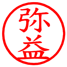 [朱肉の色]を選び、入力窓に“弥益”と入力して[生成]ボタンを押すと、印影が更新され、リンクから電子印鑑(デジタル印影)がダウンロードできます。 電子印鑑「弥益」の作り方文字表示が変なときや、文字バランスが悪いときは[字形切替]のチェックボックスでON/OFFを切り替え[生成]しなおしてください。 生成される画像は通常の印影「弥益.png」と、にじみを表現した少し太めの印影「弥益B.png」の背面透過PNG形式2種と、鮮明なPDF形式の印影「弥益.pdf」の計3種類です。 朱肉の微妙な色の違いを7色で表現しました。デフォルト(左端)は、JISが定めた朱肉の色のマンセル値(7.5R 5/14)をRGB値(217,66,54)に変換したものになっています。 「電子透かし」にチェックを入れて[生成]ボタンを押すと、タイムスタンプを透かしとして埋め込んだセキュアな電子印鑑が作れます。詳細は別ページの「電子透かしとタイムスタンプ」でご覧ください。 弥益さんの日付印が作れます。「日付スタンプメーカー」は、社内向けの書類に利用されることの多い日付印(データ印)が無料で作れるWebアプリケーションです。中段に日付が入り、上段と下段は、ともに8文字まで文字が入ります。 ![]() 古代文字で落款印が作れます。「落款スタンプメーカー」で作品を引き立たせる落款印が作れます。