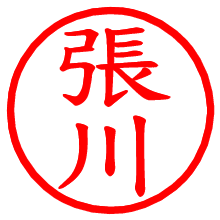 [朱肉の色]を選び、入力窓に“張川”と入力して[生成]ボタンを押すと、印影が更新され、リンクから電子印鑑(デジタル印影)がダウンロードできます。 電子印鑑「張川」の作り方文字表示が変なときや、文字バランスが悪いときは[字形切替]のチェックボックスでON/OFFを切り替え[生成]しなおしてください。 生成される画像は通常の印影「張川.png」と、にじみを表現した少し太めの印影「張川B.png」の背面透過PNG形式2種と、鮮明なPDF形式の印影「張川.pdf」の計3種類です。 朱肉の微妙な色の違いを7色で表現しました。デフォルト(左端)は、JISが定めた朱肉の色のマンセル値(7.5R 5/14)をRGB値(217,66,54)に変換したものになっています。 「電子透かし」にチェックを入れて[生成]ボタンを押すと、タイムスタンプを電子透かしとして埋め込んだセキュアな電子印鑑が作れます。詳細は別ページの「タイムスタンプと電子透かし」でご覧ください。 張川さんの日付印が作れます。「日付スタンプメーカー」は、社内向けの書類に利用されることの多い日付印(データ印)が無料で作れるWebアプリケーションです。中段に日付が入り、上段と下段は、ともに8文字まで文字が入ります。 ![]() 古代文字で落款印が作れます。「落款スタンプメーカー」で作品を引き立たせる落款印が作れます。