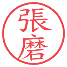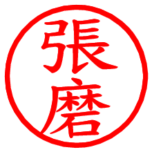 [朱肉の色]を選び、入力窓に“張磨”と入力して[生成]ボタンを押すと、印影が更新され、リンクから電子印鑑(デジタル印影)がダウンロードできます。 電子印鑑「張磨」の作り方文字表示が変なときや、文字バランスが悪いときは[字形切替]のチェックボックスでON/OFFを切り替え[生成]しなおしてください。 生成される画像は通常の印影「張磨.png」と、にじみを表現した少し太めの印影「張磨B.png」の背面透過PNG形式2種と、鮮明なPDF形式の印影「張磨.pdf」の計3種類です。 朱肉の微妙な色の違いを7色で表現しました。デフォルト(左端)は、JISが定めた朱肉の色のマンセル値(7.5R 5/14)をRGB値(217,66,54)に変換したものになっています。 「電子透かし」にチェックを入れて[生成]ボタンを押すと、タイムスタンプを電子透かしとして埋め込んだセキュアな電子印鑑が作れます。詳細は別ページの「タイムスタンプと電子透かし」でご覧ください。 張磨さんの日付印が作れます。「日付スタンプメーカー」は、社内向けの書類に利用されることの多い日付印(データ印)が無料で作れるWebアプリケーションです。中段に日付が入り、上段と下段は、ともに8文字まで文字が入ります。 ![]() 古代文字で落款印が作れます。「落款スタンプメーカー」で作品を引き立たせる落款印が作れます。