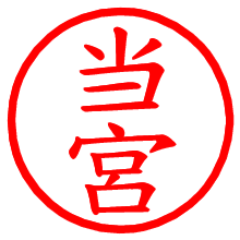 [朱肉の色]を選び、入力窓に“当宮”と入力して[生成]ボタンを押すと、印影が更新され、リンクから電子印鑑(デジタル印影)がダウンロードできます。 電子印鑑「当宮」の作り方文字表示が変なときや、文字バランスが悪いときは[字形切替]のチェックボックスでON/OFFを切り替え[生成]しなおしてください。 生成される画像は通常の印影「当宮.png」と、にじみを表現した少し太めの印影「当宮B.png」の背面透過PNG形式2種と、鮮明なPDF形式の印影「当宮.pdf」の計3種類です。 朱肉の微妙な色の違いを7色で表現しました。デフォルト(左端)は、JISが定めた朱肉の色のマンセル値(7.5R 5/14)をRGB値(217,66,54)に変換したものになっています。 「電子透かし」にチェックを入れて[生成]ボタンを押すと、タイムスタンプを電子透かしとして埋め込んだセキュアな電子印鑑が作れます。詳細は別ページの「タイムスタンプと電子透かし」でご覧ください。 当宮さんの日付印が作れます。「日付スタンプメーカー」は、社内向けの書類に利用されることの多い日付印(データ印)が無料で作れるWebアプリケーションです。中段に日付が入り、上段と下段は、ともに8文字まで文字が入ります。 ![]() 古代文字で落款印が作れます。「落款スタンプメーカー」で作品を引き立たせる落款印が作れます。