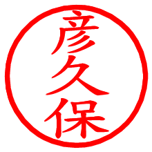 [朱肉の色]を選び、入力窓に“彦久保”と入力して[生成]ボタンを押すと、印影が更新され、リンクから電子印鑑(デジタル印影)がダウンロードできます。 電子印鑑「彦久保」の作り方文字表示が変なときや、文字バランスが悪いときは[字形切替]のチェックボックスでON/OFFを切り替え[生成]しなおしてください。 生成される画像は通常の印影「彦久保.png」と、にじみを表現した少し太めの印影「彦久保B.png」の背面透過PNG形式2種と、鮮明なPDF形式の印影「彦久保.pdf」の計3種類です。 朱肉の微妙な色の違いを7色で表現しました。デフォルト(左端)は、JISが定めた朱肉の色のマンセル値(7.5R 5/14)をRGB値(217,66,54)に変換したものになっています。 「電子透かし」にチェックを入れて[生成]ボタンを押すと、タイムスタンプを透かしとして埋め込んだセキュアな電子印鑑が作れます。詳細は別ページの「電子透かしとタイムスタンプ」でご覧ください。 彦久保さんの日付印が作れます。「日付スタンプメーカー」は、社内向けの書類に利用されることの多い日付印(データ印)が無料で作れるWebアプリケーションです。中段に日付が入り、上段と下段は、ともに8文字まで文字が入ります。 ![]() 古代文字で落款印が作れます。「落款スタンプメーカー」で作品を引き立たせる落款印が作れます。