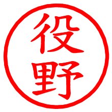 [朱肉の色]を選び、入力窓に“役野”と入力して[生成]ボタンを押すと、印影が更新され、リンクから電子印鑑(デジタル印影)がダウンロードできます。 電子印鑑「役野」の作り方文字表示が変なときや、文字バランスが悪いときは[字形切替]のチェックボックスでON/OFFを切り替え[生成]しなおしてください。 生成される画像は通常の印影「役野.png」と、にじみを表現した少し太めの印影「役野B.png」の背面透過PNG形式2種と、鮮明なPDF形式の印影「役野.pdf」の計3種類です。 朱肉の微妙な色の違いを7色で表現しました。デフォルト(左端)は、JISが定めた朱肉の色のマンセル値(7.5R 5/14)をRGB値(217,66,54)に変換したものになっています。 「電子透かし」にチェックを入れて[生成]ボタンを押すと、タイムスタンプを電子透かしとして埋め込んだセキュアな電子印鑑が作れます。詳細は別ページの「タイムスタンプと電子透かし」でご覧ください。 役野さんの日付印が作れます。「日付スタンプメーカー」は、社内向けの書類に利用されることの多い日付印(データ印)が無料で作れるWebアプリケーションです。中段に日付が入り、上段と下段は、ともに8文字まで文字が入ります。 ![]() 古代文字で落款印が作れます。「落款スタンプメーカー」で作品を引き立たせる落款印が作れます。