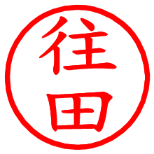 [朱肉の色]を選び、入力窓に“往田”と入力して[生成]ボタンを押すと、印影が更新され、リンクから電子印鑑(デジタル印影)がダウンロードできます。 電子印鑑「往田」の作り方文字表示が変なときや、文字バランスが悪いときは[字形切替]のチェックボックスでON/OFFを切り替え[生成]しなおしてください。 生成される画像は通常の印影「往田.png」と、にじみを表現した少し太めの印影「往田B.png」の背面透過PNG形式2種と、鮮明なPDF形式の印影「往田.pdf」の計3種類です。 朱肉の微妙な色の違いを7色で表現しました。デフォルト(左端)は、JISが定めた朱肉の色のマンセル値(7.5R 5/14)をRGB値(217,66,54)に変換したものになっています。 「電子透かし」にチェックを入れて[生成]ボタンを押すと、タイムスタンプを電子透かしとして埋め込んだセキュアな電子印鑑が作れます。詳細は別ページの「タイムスタンプと電子透かし」でご覧ください。 往田さんの日付印が作れます。「日付スタンプメーカー」は、社内向けの書類に利用されることの多い日付印(データ印)が無料で作れるWebアプリケーションです。中段に日付が入り、上段と下段は、ともに8文字まで文字が入ります。 ![]() 古代文字で落款印が作れます。「落款スタンプメーカー」で作品を引き立たせる落款印が作れます。