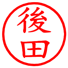 [朱肉の色]を選び、入力窓に“後田”と入力して[生成]ボタンを押すと、印影が更新され、リンクから電子印鑑(デジタル印影)がダウンロードできます。 電子印鑑「後田」の作り方文字表示が変なときや、文字バランスが悪いときは[字形切替]のチェックボックスでON/OFFを切り替え[生成]しなおしてください。 生成される画像は通常の印影「後田.png」と、にじみを表現した少し太めの印影「後田B.png」の背面透過PNG形式2種と、鮮明なPDF形式の印影「後田.pdf」の計3種類です。 朱肉の微妙な色の違いを7色で表現しました。デフォルト(左端)は、JISが定めた朱肉の色のマンセル値(7.5R 5/14)をRGB値(217,66,54)に変換したものになっています。 「電子透かし」にチェックを入れて[生成]ボタンを押すと、タイムスタンプを透かしとして埋め込んだセキュアな電子印鑑が作れます。詳細は別ページの「電子透かしとタイムスタンプ」でご覧ください。 後田さんの日付印が作れます。「日付スタンプメーカー」は、社内向けの書類に利用されることの多い日付印(データ印)が無料で作れるWebアプリケーションです。中段に日付が入り、上段と下段は、ともに8文字まで文字が入ります。 ![]() 古代文字で落款印が作れます。「落款スタンプメーカー」で作品を引き立たせる落款印が作れます。