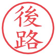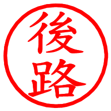 [朱肉の色]を選び、入力窓に“後路”と入力して[生成]ボタンを押すと、印影が更新され、リンクから電子印鑑(デジタル印影)がダウンロードできます。 電子印鑑「後路」の作り方文字表示が変なときや、文字バランスが悪いときは[字形切替]のチェックボックスでON/OFFを切り替え[生成]しなおしてください。 生成される画像は通常の印影「後路.png」と、にじみを表現した少し太めの印影「後路B.png」の背面透過PNG形式2種と、鮮明なPDF形式の印影「後路.pdf」の計3種類です。 朱肉の微妙な色の違いを7色で表現しました。デフォルト(左端)は、JISが定めた朱肉の色のマンセル値(7.5R 5/14)をRGB値(217,66,54)に変換したものになっています。 「電子透かし」にチェックを入れて[生成]ボタンを押すと、タイムスタンプを透かしとして埋め込んだセキュアな電子印鑑が作れます。詳細は別ページの「電子透かしとタイムスタンプ」でご覧ください。 後路さんの日付印が作れます。「日付スタンプメーカー」は、社内向けの書類に利用されることの多い日付印(データ印)が無料で作れるWebアプリケーションです。中段に日付が入り、上段と下段は、ともに8文字まで文字が入ります。 ![]() 古代文字で落款印が作れます。「落款スタンプメーカー」で作品を引き立たせる落款印が作れます。
