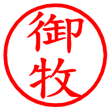 [朱肉の色]を選び、入力窓に“御牧”と入力して[生成]ボタンを押すと、印影が更新され、リンクから電子印鑑(デジタル印影)がダウンロードできます。 電子印鑑「御牧」の作り方文字表示が変なときや、文字バランスが悪いときは[字形切替]のチェックボックスでON/OFFを切り替え[生成]しなおしてください。 生成される画像は通常の印影「御牧.png」と、にじみを表現した少し太めの印影「御牧B.png」の背面透過PNG形式2種と、鮮明なPDF形式の印影「御牧.pdf」の計3種類です。 朱肉の微妙な色の違いを7色で表現しました。デフォルト(左端)は、JISが定めた朱肉の色のマンセル値(7.5R 5/14)をRGB値(217,66,54)に変換したものになっています。 「電子透かし」にチェックを入れて[生成]ボタンを押すと、タイムスタンプを電子透かしとして埋め込んだセキュアな電子印鑑が作れます。詳細は別ページの「タイムスタンプと電子透かし」でご覧ください。 御牧さんの日付印が作れます。「日付スタンプメーカー」は、社内向けの書類に利用されることの多い日付印(データ印)が無料で作れるWebアプリケーションです。中段に日付が入り、上段と下段は、ともに8文字まで文字が入ります。 ![]() 古代文字で落款印が作れます。「落款スタンプメーカー」で作品を引き立たせる落款印が作れます。