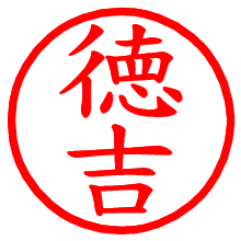 [朱肉の色]を選び、入力窓に“徳吉”と入力して[生成]ボタンを押すと、印影が更新され、リンクから電子印鑑(デジタル印影)がダウンロードできます。 電子印鑑「徳吉」の作り方文字表示が変なときや、文字バランスが悪いときは[字形切替]のチェックボックスでON/OFFを切り替え[生成]しなおしてください。 生成される画像は通常の印影「徳吉.png」と、にじみを表現した少し太めの印影「徳吉B.png」の背面透過PNG形式2種と、鮮明なPDF形式の印影「徳吉.pdf」の計3種類です。 朱肉の微妙な色の違いを7色で表現しました。デフォルト(左端)は、JISが定めた朱肉の色のマンセル値(7.5R 5/14)をRGB値(217,66,54)に変換したものになっています。 「電子透かし」にチェックを入れて[生成]ボタンを押すと、タイムスタンプを電子透かしとして埋め込んだセキュアな電子印鑑が作れます。詳細は別ページの「タイムスタンプと電子透かし」でご覧ください。 徳吉さんの日付印が作れます。「日付スタンプメーカー」は、社内向けの書類に利用されることの多い日付印(データ印)が無料で作れるWebアプリケーションです。中段に日付が入り、上段と下段は、ともに8文字まで文字が入ります。 ![]() 古代文字で落款印が作れます。「落款スタンプメーカー」で作品を引き立たせる落款印が作れます。