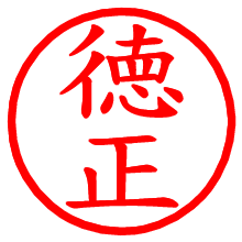 [朱肉の色]を選び、入力窓に“徳正”と入力して[生成]ボタンを押すと、印影が更新され、リンクから電子印鑑(デジタル印影)がダウンロードできます。 電子印鑑「徳正」の作り方文字表示が変なときや、文字バランスが悪いときは[字形切替]のチェックボックスでON/OFFを切り替え[生成]しなおしてください。 生成される画像は通常の印影「徳正.png」と、にじみを表現した少し太めの印影「徳正B.png」の背面透過PNG形式2種と、鮮明なPDF形式の印影「徳正.pdf」の計3種類です。 朱肉の微妙な色の違いを7色で表現しました。デフォルト(左端)は、JISが定めた朱肉の色のマンセル値(7.5R 5/14)をRGB値(217,66,54)に変換したものになっています。 「電子透かし」にチェックを入れて[生成]ボタンを押すと、タイムスタンプを電子透かしとして埋め込んだセキュアな電子印鑑が作れます。詳細は別ページの「タイムスタンプと電子透かし」でご覧ください。 徳正さんの日付印が作れます。「日付スタンプメーカー」は、社内向けの書類に利用されることの多い日付印(データ印)が無料で作れるWebアプリケーションです。中段に日付が入り、上段と下段は、ともに8文字まで文字が入ります。 ![]() 古代文字で落款印が作れます。「落款スタンプメーカー」で作品を引き立たせる落款印が作れます。