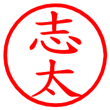[朱肉の色]を選び、入力窓に“志太”と入力して[生成]ボタンを押すと、印影が更新され、リンクから電子印鑑(デジタル印影)がダウンロードできます。 電子印鑑「志太」の作り方文字表示が変なときや、文字バランスが悪いときは[字形切替]のチェックボックスでON/OFFを切り替え[生成]しなおしてください。 生成される画像は通常の印影「志太.png」と、にじみを表現した少し太めの印影「志太B.png」の背面透過PNG形式2種と、鮮明なPDF形式の印影「志太.pdf」の計3種類です。 朱肉の微妙な色の違いを7色で表現しました。デフォルト(左端)は、JISが定めた朱肉の色のマンセル値(7.5R 5/14)をRGB値(217,66,54)に変換したものになっています。 「電子透かし」にチェックを入れて[生成]ボタンを押すと、タイムスタンプを電子透かしとして埋め込んだセキュアな電子印鑑が作れます。詳細は別ページの「タイムスタンプと電子透かし」でご覧ください。 志太さんの日付印が作れます。「日付スタンプメーカー」は、社内向けの書類に利用されることの多い日付印(データ印)が無料で作れるWebアプリケーションです。中段に日付が入り、上段と下段は、ともに8文字まで文字が入ります。 ![]() 古代文字で落款印が作れます。「落款スタンプメーカー」で作品を引き立たせる落款印が作れます。