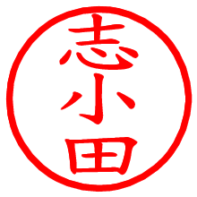 [朱肉の色]を選び、入力窓に“志小田”と入力して[生成]ボタンを押すと、印影が更新され、リンクから電子印鑑(デジタル印影)がダウンロードできます。 電子印鑑「志小田」の作り方文字表示が変なときや、文字バランスが悪いときは[字形切替]のチェックボックスでON/OFFを切り替え[生成]しなおしてください。 生成される画像は通常の印影「志小田.png」と、にじみを表現した少し太めの印影「志小田B.png」の背面透過PNG形式2種と、鮮明なPDF形式の印影「志小田.pdf」の計3種類です。 朱肉の微妙な色の違いを7色で表現しました。デフォルト(左端)は、JISが定めた朱肉の色のマンセル値(7.5R 5/14)をRGB値(217,66,54)に変換したものになっています。 「電子透かし」にチェックを入れて[生成]ボタンを押すと、タイムスタンプを電子透かしとして埋め込んだセキュアな電子印鑑が作れます。詳細は別ページの「タイムスタンプと電子透かし」でご覧ください。 志小田さんの日付印が作れます。「日付スタンプメーカー」は、社内向けの書類に利用されることの多い日付印(データ印)が無料で作れるWebアプリケーションです。中段に日付が入り、上段と下段は、ともに8文字まで文字が入ります。 ![]() 古代文字で落款印が作れます。「落款スタンプメーカー」で作品を引き立たせる落款印が作れます。