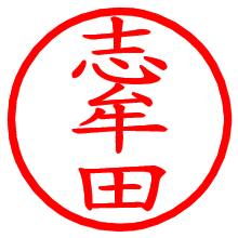 [朱肉の色]を選び、入力窓に“志牟田”と入力して[生成]ボタンを押すと、印影が更新され、リンクから電子印鑑(デジタル印影)がダウンロードできます。 電子印鑑「志牟田」の作り方文字表示が変なときや、文字バランスが悪いときは[字形切替]のチェックボックスでON/OFFを切り替え[生成]しなおしてください。 生成される画像は通常の印影「志牟田.png」と、にじみを表現した少し太めの印影「志牟田B.png」の背面透過PNG形式2種と、鮮明なPDF形式の印影「志牟田.pdf」の計3種類です。 朱肉の微妙な色の違いを7色で表現しました。デフォルト(左端)は、JISが定めた朱肉の色のマンセル値(7.5R 5/14)をRGB値(217,66,54)に変換したものになっています。 「電子透かし」にチェックを入れて[生成]ボタンを押すと、タイムスタンプを電子透かしとして埋め込んだセキュアな電子印鑑が作れます。詳細は別ページの「タイムスタンプと電子透かし」でご覧ください。 志牟田さんの日付印が作れます。「日付スタンプメーカー」は、社内向けの書類に利用されることの多い日付印(データ印)が無料で作れるWebアプリケーションです。中段に日付が入り、上段と下段は、ともに8文字まで文字が入ります。 ![]() 古代文字で落款印が作れます。「落款スタンプメーカー」で作品を引き立たせる落款印が作れます。