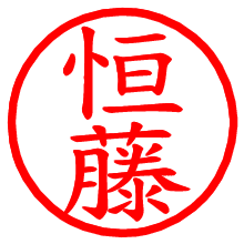 [朱肉の色]を選び、入力窓に“恒藤”と入力して[生成]ボタンを押すと、印影が更新され、リンクから電子印鑑(デジタル印影)がダウンロードできます。 電子印鑑「恒藤」の作り方文字表示が変なときや、文字バランスが悪いときは[字形切替]のチェックボックスでON/OFFを切り替え[生成]しなおしてください。 生成される画像は通常の印影「恒藤.png」と、にじみを表現した少し太めの印影「恒藤B.png」の背面透過PNG形式2種と、鮮明なPDF形式の印影「恒藤.pdf」の計3種類です。 朱肉の微妙な色の違いを7色で表現しました。デフォルト(左端)は、JISが定めた朱肉の色のマンセル値(7.5R 5/14)をRGB値(217,66,54)に変換したものになっています。 「電子透かし」にチェックを入れて[生成]ボタンを押すと、タイムスタンプを電子透かしとして埋め込んだセキュアな電子印鑑が作れます。詳細は別ページの「タイムスタンプと電子透かし」でご覧ください。 恒藤さんの日付印が作れます。「日付スタンプメーカー」は、社内向けの書類に利用されることの多い日付印(データ印)が無料で作れるWebアプリケーションです。中段に日付が入り、上段と下段は、ともに8文字まで文字が入ります。 ![]() 古代文字で落款印が作れます。「落款スタンプメーカー」で作品を引き立たせる落款印が作れます。