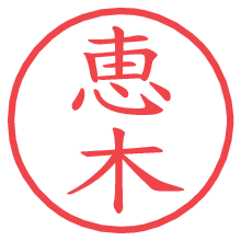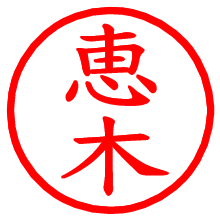 [朱肉の色]を選び、入力窓に“恵木”と入力して[生成]ボタンを押すと、印影が更新され、リンクから電子印鑑(デジタル印影)がダウンロードできます。 電子印鑑「恵木」の作り方文字表示が変なときや、文字バランスが悪いときは[字形切替]のチェックボックスでON/OFFを切り替え[生成]しなおしてください。 生成される画像は通常の印影「恵木.png」と、にじみを表現した少し太めの印影「恵木B.png」の背面透過PNG形式2種と、鮮明なPDF形式の印影「恵木.pdf」の計3種類です。 朱肉の微妙な色の違いを7色で表現しました。デフォルト(左端)は、JISが定めた朱肉の色のマンセル値(7.5R 5/14)をRGB値(217,66,54)に変換したものになっています。 「電子透かし」にチェックを入れて[生成]ボタンを押すと、タイムスタンプを電子透かしとして埋め込んだセキュアな電子印鑑が作れます。詳細は別ページの「タイムスタンプと電子透かし」でご覧ください。 恵木さんの日付印が作れます。「日付スタンプメーカー」は、社内向けの書類に利用されることの多い日付印(データ印)が無料で作れるWebアプリケーションです。中段に日付が入り、上段と下段は、ともに8文字まで文字が入ります。 ![]() 古代文字で落款印が作れます。「落款スタンプメーカー」で作品を引き立たせる落款印が作れます。