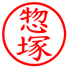 [朱肉の色]を選び、入力窓に“惣塚”と入力して[生成]ボタンを押すと、印影が更新され、リンクから電子印鑑(デジタル印影)がダウンロードできます。 電子印鑑「惣塚」の作り方文字表示が変なときや、文字バランスが悪いときは[字形切替]のチェックボックスでON/OFFを切り替え[生成]しなおしてください。 生成される画像は通常の印影「惣塚.png」と、にじみを表現した少し太めの印影「惣塚B.png」の背面透過PNG形式2種と、鮮明なPDF形式の印影「惣塚.pdf」の計3種類です。 朱肉の微妙な色の違いを7色で表現しました。デフォルト(左端)は、JISが定めた朱肉の色のマンセル値(7.5R 5/14)をRGB値(217,66,54)に変換したものになっています。 「電子透かし」にチェックを入れて[生成]ボタンを押すと、タイムスタンプを透かしとして埋め込んだセキュアな電子印鑑が作れます。詳細は別ページの「電子透かしとタイムスタンプ」でご覧ください。 ![]() 中段に日付が入り、上段と下段は、ともに8文字まで文字が入ります。 ![]() ![]() ![]() 「落款スタンプメーカー」で作成した落款印の全体的な配置バランスの確認にご利用いただけます。デザインのワンポイントやラインスタンプ等にもお使いください。 ![]() 絵文字が使えてLINEスタンプや年賀状にも使える消しゴムはんこ風の電子印鑑が作れます。 ![]() マイスタンプメーカーとは法的な電子印鑑にはあたりませんので三文判的な位置付けでご利用ください。 |