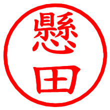 [朱肉の色]を選び、入力窓に“懸田”と入力して[生成]ボタンを押すと、印影が更新され、リンクから電子印鑑(デジタル印影)がダウンロードできます。 電子印鑑「懸田」の作り方文字表示が変なときや、文字バランスが悪いときは[字形切替]のチェックボックスでON/OFFを切り替え[生成]しなおしてください。 生成される画像は通常の印影「懸田.png」と、にじみを表現した少し太めの印影「懸田B.png」の背面透過PNG形式2種と、鮮明なPDF形式の印影「懸田.pdf」の計3種類です。 朱肉の微妙な色の違いを7色で表現しました。デフォルト(左端)は、JISが定めた朱肉の色のマンセル値(7.5R 5/14)をRGB値(217,66,54)に変換したものになっています。 「電子透かし」にチェックを入れて[生成]ボタンを押すと、タイムスタンプを透かしとして埋め込んだセキュアな電子印鑑が作れます。詳細は別ページの「電子透かしとタイムスタンプ」でご覧ください。 懸田さんの日付印が作れます。「日付スタンプメーカー」は、社内向けの書類に利用されることの多い日付印(データ印)が無料で作れるWebアプリケーションです。中段に日付が入り、上段と下段は、ともに8文字まで文字が入ります。 ![]() 古代文字で落款印が作れます。「落款スタンプメーカー」で作品を引き立たせる落款印が作れます。