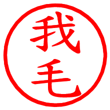 [朱肉の色]を選び、入力窓に“我毛”と入力して[生成]ボタンを押すと、印影が更新され、リンクから電子印鑑(デジタル印影)がダウンロードできます。 電子印鑑「我毛」の作り方文字表示が変なときや、文字バランスが悪いときは[字形切替]のチェックボックスでON/OFFを切り替え[生成]しなおしてください。 生成される画像は通常の印影「我毛.png」と、にじみを表現した少し太めの印影「我毛B.png」の背面透過PNG形式2種と、鮮明なPDF形式の印影「我毛.pdf」の計3種類です。 朱肉の微妙な色の違いを7色で表現しました。デフォルト(左端)は、JISが定めた朱肉の色のマンセル値(7.5R 5/14)をRGB値(217,66,54)に変換したものになっています。 「電子透かし」にチェックを入れて[生成]ボタンを押すと、タイムスタンプを透かしとして埋め込んだセキュアな電子印鑑が作れます。詳細は別ページの「電子透かしとタイムスタンプ」でご覧ください。 我毛さんの日付印が作れます。「日付スタンプメーカー」は、社内向けの書類に利用されることの多い日付印(データ印)が無料で作れるWebアプリケーションです。中段に日付が入り、上段と下段は、ともに8文字まで文字が入ります。 ![]() 古代文字で落款印が作れます。「落款スタンプメーカー」で作品を引き立たせる落款印が作れます。