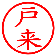 [朱肉の色]を選び、入力窓に“戸来”と入力して[生成]ボタンを押すと、印影が更新され、リンクから電子印鑑(デジタル印影)がダウンロードできます。 電子印鑑「戸来」の作り方文字表示が変なときや、文字バランスが悪いときは[字形切替]のチェックボックスでON/OFFを切り替え[生成]しなおしてください。 生成される画像は通常の印影「戸来.png」と、にじみを表現した少し太めの印影「戸来B.png」の背面透過PNG形式2種と、鮮明なPDF形式の印影「戸来.pdf」の計3種類です。 朱肉の微妙な色の違いを7色で表現しました。デフォルト(左端)は、JISが定めた朱肉の色のマンセル値(7.5R 5/14)をRGB値(217,66,54)に変換したものになっています。 「電子透かし」にチェックを入れて[生成]ボタンを押すと、タイムスタンプを電子透かしとして埋め込んだセキュアな電子印鑑が作れます。詳細は別ページの「タイムスタンプと電子透かし」でご覧ください。 戸来さんの日付印が作れます。「日付スタンプメーカー」は、社内向けの書類に利用されることの多い日付印(データ印)が無料で作れるWebアプリケーションです。中段に日付が入り、上段と下段は、ともに8文字まで文字が入ります。 ![]() 古代文字で落款印が作れます。「落款スタンプメーカー」で作品を引き立たせる落款印が作れます。