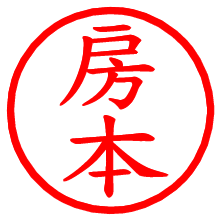 [朱肉の色]を選び、入力窓に“房本”と入力して[生成]ボタンを押すと、印影が更新され、リンクから電子印鑑(デジタル印影)がダウンロードできます。 電子印鑑「房本」の作り方文字表示が変なときや、文字バランスが悪いときは[字形切替]のチェックボックスでON/OFFを切り替え[生成]しなおしてください。 生成される画像は通常の印影「房本.png」と、にじみを表現した少し太めの印影「房本B.png」の背面透過PNG形式2種と、鮮明なPDF形式の印影「房本.pdf」の計3種類です。 朱肉の微妙な色の違いを7色で表現しました。デフォルト(左端)は、JISが定めた朱肉の色のマンセル値(7.5R 5/14)をRGB値(217,66,54)に変換したものになっています。 「電子透かし」にチェックを入れて[生成]ボタンを押すと、タイムスタンプを透かしとして埋め込んだセキュアな電子印鑑が作れます。詳細は別ページの「電子透かしとタイムスタンプ」でご覧ください。  房本さんの日付印が作れます。「日付スタンプメーカー」は、社内向けの書類に利用されることの多い日付印(データ印)が無料で作れるWebアプリケーションです。中段に日付が入り、上段と下段は、ともに8文字まで文字が入ります。 ![]()  古代文字で落款印が作れます。「落款スタンプメーカー」で作品を引き立たせる落款印が作れます。