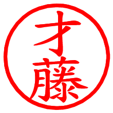 [朱肉の色]を選び、入力窓に“才藤”と入力して[生成]ボタンを押すと、印影が更新され、リンクから電子印鑑(デジタル印影)がダウンロードできます。 電子印鑑「才藤」の作り方文字表示が変なときや、文字バランスが悪いときは[字形切替]のチェックボックスでON/OFFを切り替え[生成]しなおしてください。 生成される画像は通常の印影「才藤.png」と、にじみを表現した少し太めの印影「才藤B.png」の背面透過PNG形式2種と、鮮明なPDF形式の印影「才藤.pdf」の計3種類です。 朱肉の微妙な色の違いを7色で表現しました。デフォルト(左端)は、JISが定めた朱肉の色のマンセル値(7.5R 5/14)をRGB値(217,66,54)に変換したものになっています。 「電子透かし」にチェックを入れて[生成]ボタンを押すと、タイムスタンプを電子透かしとして埋め込んだセキュアな電子印鑑が作れます。詳細は別ページの「タイムスタンプと電子透かし」でご覧ください。 才藤さんの日付印が作れます。「日付スタンプメーカー」は、社内向けの書類に利用されることの多い日付印(データ印)が無料で作れるWebアプリケーションです。中段に日付が入り、上段と下段は、ともに8文字まで文字が入ります。 ![]() 古代文字で落款印が作れます。「落款スタンプメーカー」で作品を引き立たせる落款印が作れます。