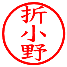 [朱肉の色]を選び、入力窓に“折小野”と入力して[生成]ボタンを押すと、印影が更新され、リンクから電子印鑑(デジタル印影)がダウンロードできます。 電子印鑑「折小野」の作り方文字表示が変なときや、文字バランスが悪いときは[字形切替]のチェックボックスでON/OFFを切り替え[生成]しなおしてください。 生成される画像は通常の印影「折小野.png」と、にじみを表現した少し太めの印影「折小野B.png」の背面透過PNG形式2種と、鮮明なPDF形式の印影「折小野.pdf」の計3種類です。 朱肉の微妙な色の違いを7色で表現しました。デフォルト(左端)は、JISが定めた朱肉の色のマンセル値(7.5R 5/14)をRGB値(217,66,54)に変換したものになっています。 「電子透かし」にチェックを入れて[生成]ボタンを押すと、タイムスタンプを電子透かしとして埋め込んだセキュアな電子印鑑が作れます。詳細は別ページの「タイムスタンプと電子透かし」でご覧ください。 折小野さんの日付印が作れます。「日付スタンプメーカー」は、社内向けの書類に利用されることの多い日付印(データ印)が無料で作れるWebアプリケーションです。中段に日付が入り、上段と下段は、ともに8文字まで文字が入ります。 ![]() 古代文字で落款印が作れます。「落款スタンプメーカー」で作品を引き立たせる落款印が作れます。