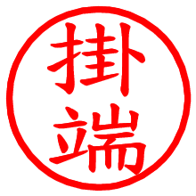 [朱肉の色]を選び、入力窓に“掛端”と入力して[生成]ボタンを押すと、印影が更新され、リンクから電子印鑑(デジタル印影)がダウンロードできます。 電子印鑑「掛端」の作り方文字表示が変なときや、文字バランスが悪いときは[字形切替]のチェックボックスでON/OFFを切り替え[生成]しなおしてください。 生成される画像は通常の印影「掛端.png」と、にじみを表現した少し太めの印影「掛端B.png」の背面透過PNG形式2種と、鮮明なPDF形式の印影「掛端.pdf」の計3種類です。 朱肉の微妙な色の違いを7色で表現しました。デフォルト(左端)は、JISが定めた朱肉の色のマンセル値(7.5R 5/14)をRGB値(217,66,54)に変換したものになっています。 「電子透かし」にチェックを入れて[生成]ボタンを押すと、タイムスタンプを電子透かしとして埋め込んだセキュアな電子印鑑が作れます。詳細は別ページの「タイムスタンプと電子透かし」でご覧ください。 掛端さんの日付印が作れます。「日付スタンプメーカー」は、社内向けの書類に利用されることの多い日付印(データ印)が無料で作れるWebアプリケーションです。中段に日付が入り、上段と下段は、ともに8文字まで文字が入ります。 ![]() 古代文字で落款印が作れます。「落款スタンプメーカー」で作品を引き立たせる落款印が作れます。