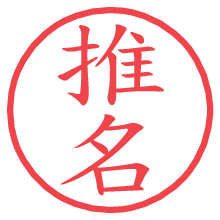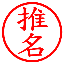 [朱肉の色]を選び、入力窓に“推名”と入力して[生成]ボタンを押すと、印影が更新され、リンクから電子印鑑(デジタル印影)がダウンロードできます。 電子印鑑「推名」の作り方文字表示が変なときや、文字バランスが悪いときは[字形切替]のチェックボックスでON/OFFを切り替え[生成]しなおしてください。 生成される画像は通常の印影「推名.png」と、にじみを表現した少し太めの印影「推名B.png」の背面透過PNG形式2種と、鮮明なPDF形式の印影「推名.pdf」の計3種類です。 朱肉の微妙な色の違いを7色で表現しました。デフォルト(左端)は、JISが定めた朱肉の色のマンセル値(7.5R 5/14)をRGB値(217,66,54)に変換したものになっています。 「電子透かし」にチェックを入れて[生成]ボタンを押すと、タイムスタンプを電子透かしとして埋め込んだセキュアな電子印鑑が作れます。詳細は別ページの「タイムスタンプと電子透かし」でご覧ください。 推名さんの日付印が作れます。「日付スタンプメーカー」は、社内向けの書類に利用されることの多い日付印(データ印)が無料で作れるWebアプリケーションです。中段に日付が入り、上段と下段は、ともに8文字まで文字が入ります。 ![]() 古代文字で落款印が作れます。「落款スタンプメーカー」で作品を引き立たせる落款印が作れます。