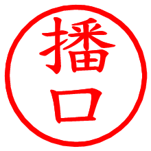 [朱肉の色]を選び、入力窓に“播口”と入力して[生成]ボタンを押すと、印影が更新され、リンクから電子印鑑(デジタル印影)がダウンロードできます。 電子印鑑「播口」の作り方文字表示が変なときや、文字バランスが悪いときは[字形切替]のチェックボックスでON/OFFを切り替え[生成]しなおしてください。 生成される画像は通常の印影「播口.png」と、にじみを表現した少し太めの印影「播口B.png」の背面透過PNG形式2種と、鮮明なPDF形式の印影「播口.pdf」の計3種類です。 朱肉の微妙な色の違いを7色で表現しました。デフォルト(左端)は、JISが定めた朱肉の色のマンセル値(7.5R 5/14)をRGB値(217,66,54)に変換したものになっています。 「電子透かし」にチェックを入れて[生成]ボタンを押すと、タイムスタンプを電子透かしとして埋め込んだセキュアな電子印鑑が作れます。詳細は別ページの「タイムスタンプと電子透かし」でご覧ください。 播口さんの日付印が作れます。「日付スタンプメーカー」は、社内向けの書類に利用されることの多い日付印(データ印)が無料で作れるWebアプリケーションです。中段に日付が入り、上段と下段は、ともに8文字まで文字が入ります。 ![]() 古代文字で落款印が作れます。「落款スタンプメーカー」で作品を引き立たせる落款印が作れます。