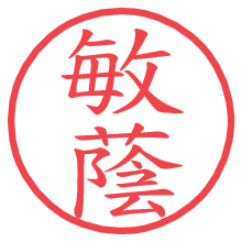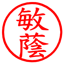 [朱肉の色]を選び、入力窓に“敏蔭”と入力して[生成]ボタンを押すと、印影が更新され、リンクから電子印鑑(デジタル印影)がダウンロードできます。 電子印鑑「敏蔭」の作り方文字表示が変なときや、文字バランスが悪いときは[字形切替]のチェックボックスでON/OFFを切り替え[生成]しなおしてください。 生成される画像は通常の印影「敏蔭.png」と、にじみを表現した少し太めの印影「敏蔭B.png」の背面透過PNG形式2種と、鮮明なPDF形式の印影「敏蔭.pdf」の計3種類です。 朱肉の微妙な色の違いを7色で表現しました。デフォルト(左端)は、JISが定めた朱肉の色のマンセル値(7.5R 5/14)をRGB値(217,66,54)に変換したものになっています。 「電子透かし」にチェックを入れて[生成]ボタンを押すと、タイムスタンプを電子透かしとして埋め込んだセキュアな電子印鑑が作れます。詳細は別ページの「タイムスタンプと電子透かし」でご覧ください。 敏蔭さんの日付印が作れます。「日付スタンプメーカー」は、社内向けの書類に利用されることの多い日付印(データ印)が無料で作れるWebアプリケーションです。中段に日付が入り、上段と下段は、ともに8文字まで文字が入ります。 ![]() 古代文字で落款印が作れます。「落款スタンプメーカー」で作品を引き立たせる落款印が作れます。