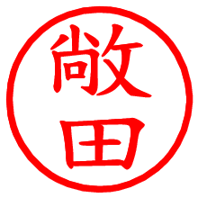 [朱肉の色]を選び、入力窓に“敞田”と入力して[生成]ボタンを押すと、印影が更新され、リンクから電子印鑑(デジタル印影)がダウンロードできます。 電子印鑑「敞田」の作り方文字表示が変なときや、文字バランスが悪いときは[字形切替]のチェックボックスでON/OFFを切り替え[生成]しなおしてください。 生成される画像は通常の印影「敞田.png」と、にじみを表現した少し太めの印影「敞田B.png」の背面透過PNG形式2種と、鮮明なPDF形式の印影「敞田.pdf」の計3種類です。 朱肉の微妙な色の違いを7色で表現しました。デフォルト(左端)は、JISが定めた朱肉の色のマンセル値(7.5R 5/14)をRGB値(217,66,54)に変換したものになっています。 「電子透かし」にチェックを入れて[生成]ボタンを押すと、タイムスタンプを電子透かしとして埋め込んだセキュアな電子印鑑が作れます。詳細は別ページの「タイムスタンプと電子透かし」でご覧ください。 敞田さんの日付印が作れます。「日付スタンプメーカー」は、社内向けの書類に利用されることの多い日付印(データ印)が無料で作れるWebアプリケーションです。中段に日付が入り、上段と下段は、ともに8文字まで文字が入ります。 ![]() 古代文字で落款印が作れます。「落款スタンプメーカー」で作品を引き立たせる落款印が作れます。