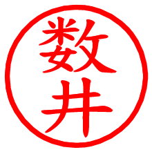 [朱肉の色]を選び、入力窓に“数井”と入力して[生成]ボタンを押すと、印影が更新され、リンクから電子印鑑(デジタル印影)がダウンロードできます。 電子印鑑「数井」の作り方文字表示が変なときや、文字バランスが悪いときは[字形切替]のチェックボックスでON/OFFを切り替え[生成]しなおしてください。 生成される画像は通常の印影「数井.png」と、にじみを表現した少し太めの印影「数井B.png」の背面透過PNG形式2種と、鮮明なPDF形式の印影「数井.pdf」の計3種類です。 朱肉の微妙な色の違いを7色で表現しました。デフォルト(左端)は、JISが定めた朱肉の色のマンセル値(7.5R 5/14)をRGB値(217,66,54)に変換したものになっています。 「電子透かし」にチェックを入れて[生成]ボタンを押すと、タイムスタンプを電子透かしとして埋め込んだセキュアな電子印鑑が作れます。詳細は別ページの「タイムスタンプと電子透かし」でご覧ください。 数井さんの日付印が作れます。「日付スタンプメーカー」は、社内向けの書類に利用されることの多い日付印(データ印)が無料で作れるWebアプリケーションです。中段に日付が入り、上段と下段は、ともに8文字まで文字が入ります。 ![]() 古代文字で落款印が作れます。「落款スタンプメーカー」で作品を引き立たせる落款印が作れます。