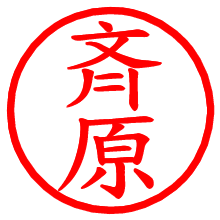 [朱肉の色]を選び、入力窓に“斉原”と入力して[生成]ボタンを押すと、印影が更新され、リンクから電子印鑑(デジタル印影)がダウンロードできます。 電子印鑑「斉原」の作り方文字表示が変なときや、文字バランスが悪いときは[字形切替]のチェックボックスでON/OFFを切り替え[生成]しなおしてください。 生成される画像は通常の印影「斉原.png」と、にじみを表現した少し太めの印影「斉原B.png」の背面透過PNG形式2種と、鮮明なPDF形式の印影「斉原.pdf」の計3種類です。 朱肉の微妙な色の違いを7色で表現しました。デフォルト(左端)は、JISが定めた朱肉の色のマンセル値(7.5R 5/14)をRGB値(217,66,54)に変換したものになっています。 「電子透かし」にチェックを入れて[生成]ボタンを押すと、タイムスタンプを電子透かしとして埋め込んだセキュアな電子印鑑が作れます。詳細は別ページの「タイムスタンプと電子透かし」でご覧ください。 斉原さんの日付印が作れます。「日付スタンプメーカー」は、社内向けの書類に利用されることの多い日付印(データ印)が無料で作れるWebアプリケーションです。中段に日付が入り、上段と下段は、ともに8文字まで文字が入ります。 ![]() 古代文字で落款印が作れます。「落款スタンプメーカー」で作品を引き立たせる落款印が作れます。