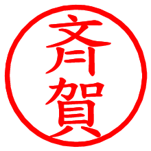 [朱肉の色]を選び、入力窓に“斉賀”と入力して[生成]ボタンを押すと、印影が更新され、リンクから電子印鑑(デジタル印影)がダウンロードできます。 電子印鑑「斉賀」の作り方文字表示が変なときや、文字バランスが悪いときは[字形切替]のチェックボックスでON/OFFを切り替え[生成]しなおしてください。 生成される画像は通常の印影「斉賀.png」と、にじみを表現した少し太めの印影「斉賀B.png」の背面透過PNG形式2種と、鮮明なPDF形式の印影「斉賀.pdf」の計3種類です。 朱肉の微妙な色の違いを7色で表現しました。デフォルト(左端)は、JISが定めた朱肉の色のマンセル値(7.5R 5/14)をRGB値(217,66,54)に変換したものになっています。 「電子透かし」にチェックを入れて[生成]ボタンを押すと、タイムスタンプを電子透かしとして埋め込んだセキュアな電子印鑑が作れます。詳細は別ページの「タイムスタンプと電子透かし」でご覧ください。 斉賀さんの日付印が作れます。「日付スタンプメーカー」は、社内向けの書類に利用されることの多い日付印(データ印)が無料で作れるWebアプリケーションです。中段に日付が入り、上段と下段は、ともに8文字まで文字が入ります。 ![]() 古代文字で落款印が作れます。「落款スタンプメーカー」で作品を引き立たせる落款印が作れます。