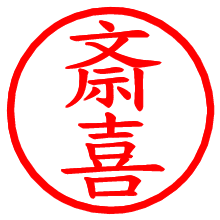 [朱肉の色]を選び、入力窓に“斎喜”と入力して[生成]ボタンを押すと、印影が更新され、リンクから電子印鑑(デジタル印影)がダウンロードできます。 電子印鑑「斎喜」の作り方文字表示が変なときや、文字バランスが悪いときは[字形切替]のチェックボックスでON/OFFを切り替え[生成]しなおしてください。 生成される画像は通常の印影「斎喜.png」と、にじみを表現した少し太めの印影「斎喜B.png」の背面透過PNG形式2種と、鮮明なPDF形式の印影「斎喜.pdf」の計3種類です。 朱肉の微妙な色の違いを7色で表現しました。デフォルト(左端)は、JISが定めた朱肉の色のマンセル値(7.5R 5/14)をRGB値(217,66,54)に変換したものになっています。 「電子透かし」にチェックを入れて[生成]ボタンを押すと、タイムスタンプを電子透かしとして埋め込んだセキュアな電子印鑑が作れます。詳細は別ページの「タイムスタンプと電子透かし」でご覧ください。 斎喜さんの日付印が作れます。「日付スタンプメーカー」は、社内向けの書類に利用されることの多い日付印(データ印)が無料で作れるWebアプリケーションです。中段に日付が入り、上段と下段は、ともに8文字まで文字が入ります。 ![]() 古代文字で落款印が作れます。「落款スタンプメーカー」で作品を引き立たせる落款印が作れます。