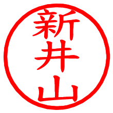[朱肉の色]を選び、入力窓に“新井山”と入力して[生成]ボタンを押すと、印影が更新され、リンクから電子印鑑(デジタル印影)がダウンロードできます。 電子印鑑「新井山」の作り方文字表示が変なときや、文字バランスが悪いときは[字形切替]のチェックボックスでON/OFFを切り替え[生成]しなおしてください。 生成される画像は通常の印影「新井山.png」と、にじみを表現した少し太めの印影「新井山B.png」の背面透過PNG形式2種と、鮮明なPDF形式の印影「新井山.pdf」の計3種類です。 朱肉の微妙な色の違いを7色で表現しました。デフォルト(左端)は、JISが定めた朱肉の色のマンセル値(7.5R 5/14)をRGB値(217,66,54)に変換したものになっています。 「電子透かし」にチェックを入れて[生成]ボタンを押すと、タイムスタンプを電子透かしとして埋め込んだセキュアな電子印鑑が作れます。詳細は別ページの「タイムスタンプと電子透かし」でご覧ください。 新井山さんの日付印が作れます。「日付スタンプメーカー」は、社内向けの書類に利用されることの多い日付印(データ印)が無料で作れるWebアプリケーションです。中段に日付が入り、上段と下段は、ともに8文字まで文字が入ります。 ![]() 古代文字で落款印が作れます。「落款スタンプメーカー」で作品を引き立たせる落款印が作れます。