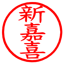 [朱肉の色]を選び、入力窓に“新嘉喜”と入力して[生成]ボタンを押すと、印影が更新され、リンクから電子印鑑(デジタル印影)がダウンロードできます。 電子印鑑「新嘉喜」の作り方文字表示が変なときや、文字バランスが悪いときは[字形切替]のチェックボックスでON/OFFを切り替え[生成]しなおしてください。 生成される画像は通常の印影「新嘉喜.png」と、にじみを表現した少し太めの印影「新嘉喜B.png」の背面透過PNG形式2種と、鮮明なPDF形式の印影「新嘉喜.pdf」の計3種類です。 朱肉の微妙な色の違いを7色で表現しました。デフォルト(左端)は、JISが定めた朱肉の色のマンセル値(7.5R 5/14)をRGB値(217,66,54)に変換したものになっています。 「電子透かし」にチェックを入れて[生成]ボタンを押すと、タイムスタンプを電子透かしとして埋め込んだセキュアな電子印鑑が作れます。詳細は別ページの「タイムスタンプと電子透かし」でご覧ください。 新嘉喜さんの日付印が作れます。「日付スタンプメーカー」は、社内向けの書類に利用されることの多い日付印(データ印)が無料で作れるWebアプリケーションです。中段に日付が入り、上段と下段は、ともに8文字まで文字が入ります。 ![]() 古代文字で落款印が作れます。「落款スタンプメーカー」で作品を引き立たせる落款印が作れます。
