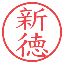 [朱肉の色]を選び、入力窓に“新徳”と入力して[生成]ボタンを押すと、印影が更新され、リンクから電子印鑑(デジタル印影)がダウンロードできます。 電子印鑑「新徳」の作り方文字表示が変なときや、文字バランスが悪いときは[字形切替]のチェックボックスでON/OFFを切り替え[生成]しなおしてください。 生成される画像は通常の印影「新徳.png」と、にじみを表現した少し太めの印影「新徳B.png」の背面透過PNG形式2種と、鮮明なPDF形式の印影「新徳.pdf」の計3種類です。 朱肉の微妙な色の違いを7色で表現しました。デフォルト(左端)は、JISが定めた朱肉の色のマンセル値(7.5R 5/14)をRGB値(217,66,54)に変換したものになっています。 「電子透かし」にチェックを入れて[生成]ボタンを押すと、タイムスタンプを電子透かしとして埋め込んだセキュアな電子印鑑が作れます。詳細は別ページの「タイムスタンプと電子透かし」でご覧ください。 新徳さんの日付印が作れます。「日付スタンプメーカー」は、社内向けの書類に利用されることの多い日付印(データ印)が無料で作れるWebアプリケーションです。中段に日付が入り、上段と下段は、ともに8文字まで文字が入ります。 ![]() 古代文字で落款印が作れます。「落款スタンプメーカー」で作品を引き立たせる落款印が作れます。