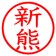 [朱肉の色]を選び、入力窓に“新熊”と入力して[生成]ボタンを押すと、印影が更新され、リンクから電子印鑑(デジタル印影)がダウンロードできます。 電子印鑑「新熊」の作り方文字表示が変なときや、文字バランスが悪いときは[字形切替]のチェックボックスでON/OFFを切り替え[生成]しなおしてください。 生成される画像は通常の印影「新熊.png」と、にじみを表現した少し太めの印影「新熊B.png」の背面透過PNG形式2種と、鮮明なPDF形式の印影「新熊.pdf」の計3種類です。 朱肉の微妙な色の違いを7色で表現しました。デフォルト(左端)は、JISが定めた朱肉の色のマンセル値(7.5R 5/14)をRGB値(217,66,54)に変換したものになっています。 「電子透かし」にチェックを入れて[生成]ボタンを押すと、タイムスタンプを電子透かしとして埋め込んだセキュアな電子印鑑が作れます。詳細は別ページの「タイムスタンプと電子透かし」でご覧ください。 新熊さんの日付印が作れます。「日付スタンプメーカー」は、社内向けの書類に利用されることの多い日付印(データ印)が無料で作れるWebアプリケーションです。中段に日付が入り、上段と下段は、ともに8文字まで文字が入ります。 ![]() 古代文字で落款印が作れます。「落款スタンプメーカー」で作品を引き立たせる落款印が作れます。