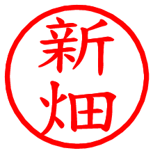 [朱肉の色]を選び、入力窓に“新畑”と入力して[生成]ボタンを押すと、印影が更新され、リンクから電子印鑑(デジタル印影)がダウンロードできます。 電子印鑑「新畑」の作り方文字表示が変なときや、文字バランスが悪いときは[字形切替]のチェックボックスでON/OFFを切り替え[生成]しなおしてください。 生成される画像は通常の印影「新畑.png」と、にじみを表現した少し太めの印影「新畑B.png」の背面透過PNG形式2種と、鮮明なPDF形式の印影「新畑.pdf」の計3種類です。 朱肉の微妙な色の違いを7色で表現しました。デフォルト(左端)は、JISが定めた朱肉の色のマンセル値(7.5R 5/14)をRGB値(217,66,54)に変換したものになっています。 「電子透かし」にチェックを入れて[生成]ボタンを押すと、タイムスタンプを電子透かしとして埋め込んだセキュアな電子印鑑が作れます。詳細は別ページの「タイムスタンプと電子透かし」でご覧ください。 新畑さんの日付印が作れます。「日付スタンプメーカー」は、社内向けの書類に利用されることの多い日付印(データ印)が無料で作れるWebアプリケーションです。中段に日付が入り、上段と下段は、ともに8文字まで文字が入ります。 ![]() 古代文字で落款印が作れます。「落款スタンプメーカー」で作品を引き立たせる落款印が作れます。