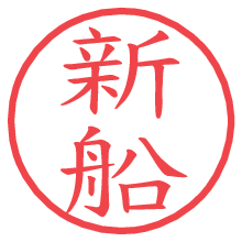 [朱肉の色]を選び、入力窓に“新船”と入力して[生成]ボタンを押すと、印影が更新され、リンクから電子印鑑(デジタル印影)がダウンロードできます。 電子印鑑「新船」の作り方文字表示が変なときや、文字バランスが悪いときは[字形切替]のチェックボックスでON/OFFを切り替え[生成]しなおしてください。 生成される画像は通常の印影「新船.png」と、にじみを表現した少し太めの印影「新船B.png」の背面透過PNG形式2種と、鮮明なPDF形式の印影「新船.pdf」の計3種類です。 朱肉の微妙な色の違いを7色で表現しました。デフォルト(左端)は、JISが定めた朱肉の色のマンセル値(7.5R 5/14)をRGB値(217,66,54)に変換したものになっています。 「電子透かし」にチェックを入れて[生成]ボタンを押すと、タイムスタンプを電子透かしとして埋め込んだセキュアな電子印鑑が作れます。詳細は別ページの「タイムスタンプと電子透かし」でご覧ください。 新船さんの日付印が作れます。「日付スタンプメーカー」は、社内向けの書類に利用されることの多い日付印(データ印)が無料で作れるWebアプリケーションです。中段に日付が入り、上段と下段は、ともに8文字まで文字が入ります。 ![]() 古代文字で落款印が作れます。「落款スタンプメーカー」で作品を引き立たせる落款印が作れます。