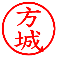 [朱肉の色]を選び、入力窓に“方城”と入力して[生成]ボタンを押すと、印影が更新され、リンクから電子印鑑(デジタル印影)がダウンロードできます。 電子印鑑「方城」の作り方文字表示が変なときや、文字バランスが悪いときは[字形切替]のチェックボックスでON/OFFを切り替え[生成]しなおしてください。 生成される画像は通常の印影「方城.png」と、にじみを表現した少し太めの印影「方城B.png」の背面透過PNG形式2種と、鮮明なPDF形式の印影「方城.pdf」の計3種類です。 朱肉の微妙な色の違いを7色で表現しました。デフォルト(左端)は、JISが定めた朱肉の色のマンセル値(7.5R 5/14)をRGB値(217,66,54)に変換したものになっています。 「電子透かし」にチェックを入れて[生成]ボタンを押すと、タイムスタンプを電子透かしとして埋め込んだセキュアな電子印鑑が作れます。詳細は別ページの「タイムスタンプと電子透かし」でご覧ください。 方城さんの日付印が作れます。「日付スタンプメーカー」は、社内向けの書類に利用されることの多い日付印(データ印)が無料で作れるWebアプリケーションです。中段に日付が入り、上段と下段は、ともに8文字まで文字が入ります。 ![]() 古代文字で落款印が作れます。「落款スタンプメーカー」で作品を引き立たせる落款印が作れます。