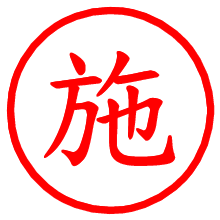 [朱肉の色]を選び、入力窓に“施”と入力して[生成]ボタンを押すと、印影が更新され、リンクから電子印鑑(デジタル印影)がダウンロードできます。 電子印鑑「施」の作り方文字表示が変なときや、文字バランスが悪いときは[字形切替]のチェックボックスでON/OFFを切り替え[生成]しなおしてください。 生成される画像は通常の印影「施.png」と、にじみを表現した少し太めの印影「施B.png」の背面透過PNG形式2種と、鮮明なPDF形式の印影「施.pdf」の計3種類です。 朱肉の微妙な色の違いを7色で表現しました。デフォルト(左端)は、JISが定めた朱肉の色のマンセル値(7.5R 5/14)をRGB値(217,66,54)に変換したものになっています。 「電子透かし」にチェックを入れて[生成]ボタンを押すと、タイムスタンプを電子透かしとして埋め込んだセキュアな電子印鑑が作れます。詳細は別ページの「タイムスタンプと電子透かし」でご覧ください。 施さんの日付印が作れます。「日付スタンプメーカー」は、社内向けの書類に利用されることの多い日付印(データ印)が無料で作れるWebアプリケーションです。中段に日付が入り、上段と下段は、ともに8文字まで文字が入ります。 ![]() 古代文字で落款印が作れます。「落款スタンプメーカー」で作品を引き立たせる落款印が作れます。