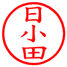 [朱肉の色]を選び、入力窓に“日小田”と入力して[生成]ボタンを押すと、印影が更新され、リンクから電子印鑑(デジタル印影)がダウンロードできます。 電子印鑑「日小田」の作り方文字表示が変なときや、文字バランスが悪いときは[字形切替]のチェックボックスでON/OFFを切り替え[生成]しなおしてください。 生成される画像は通常の印影「日小田.png」と、にじみを表現した少し太めの印影「日小田B.png」の背面透過PNG形式2種と、鮮明なPDF形式の印影「日小田.pdf」の計3種類です。 朱肉の微妙な色の違いを7色で表現しました。デフォルト(左端)は、JISが定めた朱肉の色のマンセル値(7.5R 5/14)をRGB値(217,66,54)に変換したものになっています。 「電子透かし」にチェックを入れて[生成]ボタンを押すと、タイムスタンプを電子透かしとして埋め込んだセキュアな電子印鑑が作れます。詳細は別ページの「タイムスタンプと電子透かし」でご覧ください。 日小田さんの日付印が作れます。「日付スタンプメーカー」は、社内向けの書類に利用されることの多い日付印(データ印)が無料で作れるWebアプリケーションです。中段に日付が入り、上段と下段は、ともに8文字まで文字が入ります。 ![]() 古代文字で落款印が作れます。「落款スタンプメーカー」で作品を引き立たせる落款印が作れます。